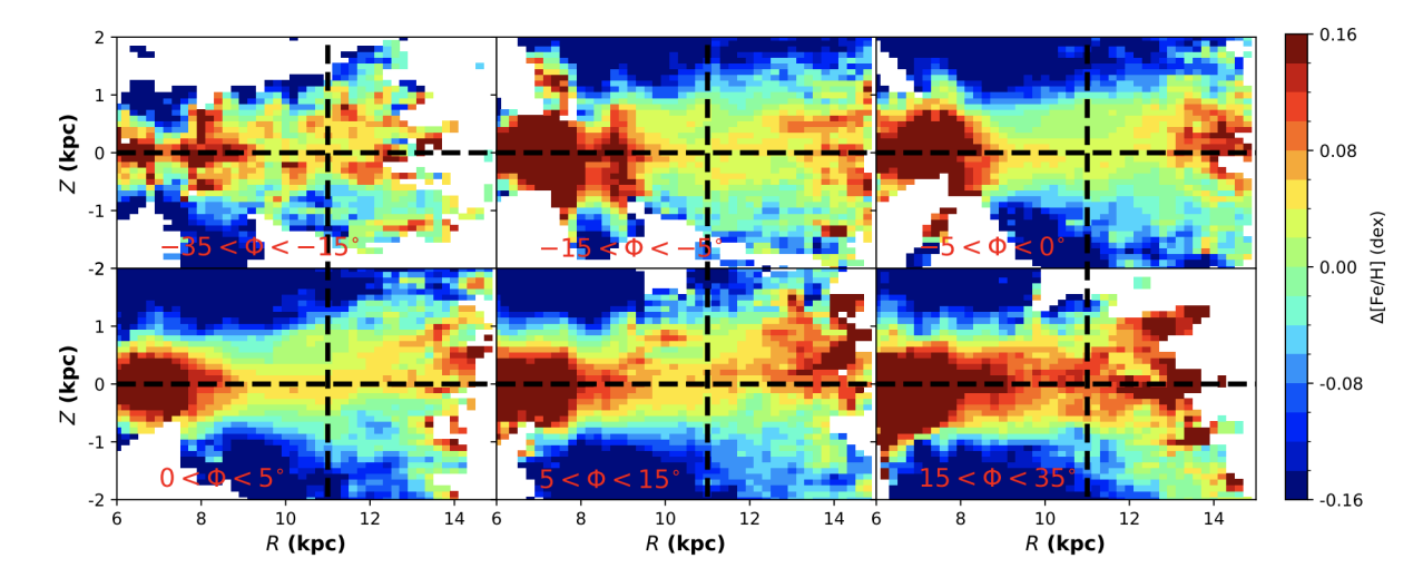 图为不同方位角下金属丰度在R-Z平面上分布图。